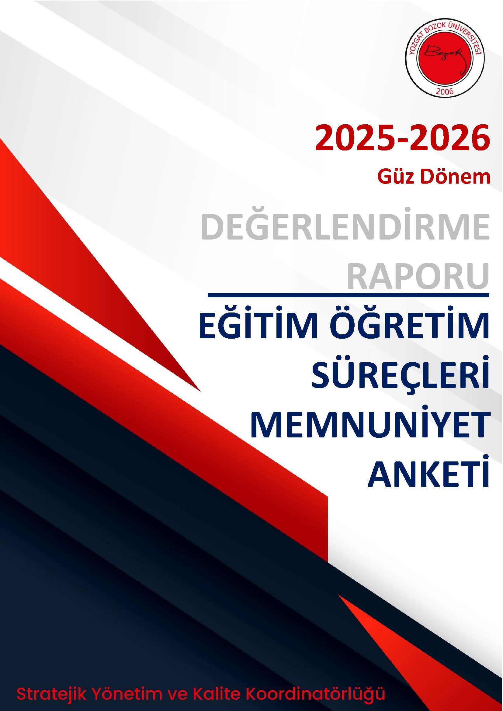 | 2025 Yılı Ara Dönem Eğitim-Öğretim Süreçleri Memnuniyet Anketi Değerlendirme Raporu | 2025-2026 Akademik Yılı Güz Dönemi Eğitim-Öğretim Süreçleri Memnuniyet Anketi Değerlendirme Raporu | |